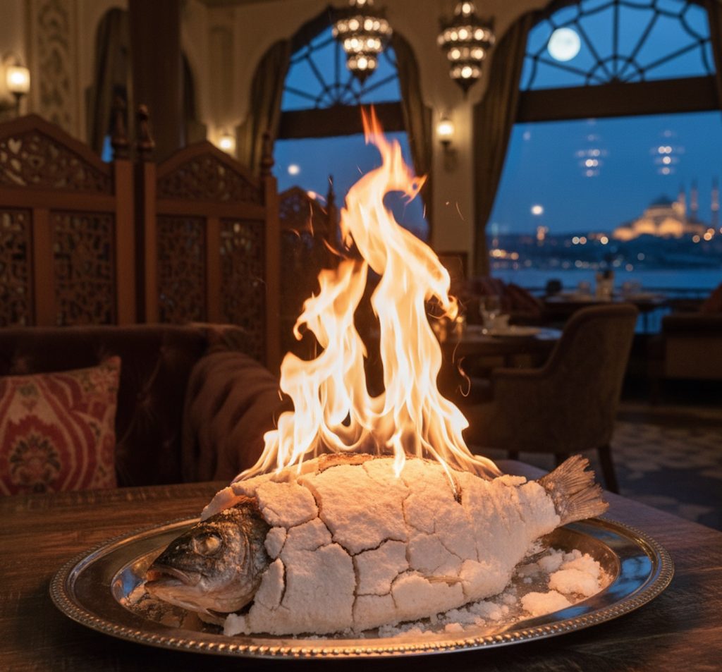Our specialty lies in our daily-selected fresh fish. Enjoy everything from a classic grilled Sea Bass to the spectacular, fire-presented Fish in Salt, a true Port Ottoman experience.